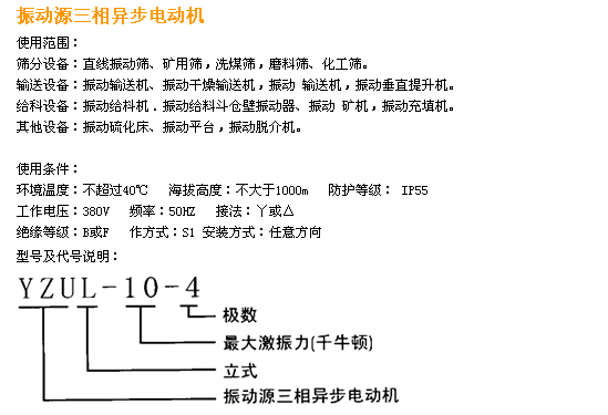VB系列立式振動(dòng)源三相異步電動(dòng)機(jī)主要有特制的立式電動(dòng)機(jī)和上下振子組成,裝配方式采用**的單法蘭結(jié)構(gòu)連接,使該立式振動(dòng)電機(jī)具有以下