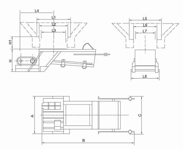 9、底板有立向筋板,并用三道通長托輥支承,保證了底板本身剛度,消除了現有往復式給料機底板工作中彎曲變形的弊病。