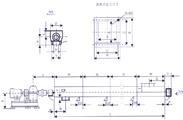 LS型螺旋輸送機等效采用ISO1050-75標準,設計制造符合ZBJ81005.1~2-88《 LS螺旋輸送機 》**標準。LS型螺旋輸送機直徑由100mm~1250mm,共十二種規格,分為單驅動和雙驅動兩種形式,單驅動螺旋輸送機*大長度可達40m(特大型30m),雙驅動螺旋輸送機采用中間斷開軸結構,*大長度可達80m(特大型60m),螺旋輸送機長度每 0.5m一檔,可根據需要選定,螺旋輸送機頭部軸承、尾部軸承置于殼體外部減少了灰塵對軸承室的侵入提高了螺旋機關鍵件的使用壽命。中間吊軸承采用滾動、滑動可互換的兩種結構,阻力小、密封性強、耐磨性好。滑動軸承的軸瓦有粉末冶金、尼龍和巴氏合金等多種材料供用戶根據不同的場合選用。吊軸承機外側置式油杯,便于集中加油潤滑。進出料口位置布置靈活,并增設電動型出料口,便于自動控制,還可根據用戶要求,配置測速報警裝置。